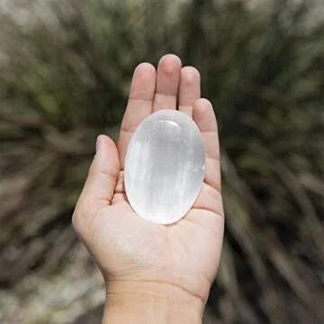 Crystal Selenite Palm Stone Spiritual Healing Massage Palmstones with Certificate of Authenticity Beverly Oaks Exclusive (1 Count (Pack of 1))