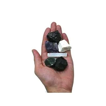 Crystals for House Protection Manifestation, Set of 6 Amethyst, Scolecite, Shungite, Black Tourmaline, Selenite and Moss Agate Healing Crystals and Stones