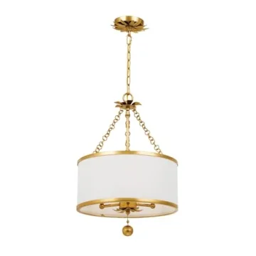 Show moreIntroducing the Crystorama Broche 3 Light Antique Gold Mini Chandelier, a stunning fusion of classic elegance and contemporary design. This exquisite piece is inspired by jewelry, featuring a unique rhythmic pattern of hand-painted metal leaves that radiate opulence while adding a rich layer of visual interest. With its versatile transitional design, this chandelier effortlessly compliments a wide array of interiors, making it a perfect addition to both traditional and modern spaces. The chandelier is convertible, allowing you to install it as either a ceiling mount or a chandelier. Its dimensions of 14"W x 20"H x 14"D ensure it fits beautifully in various room sizes, providing the perfect amount of illumination without overwhelming the space.