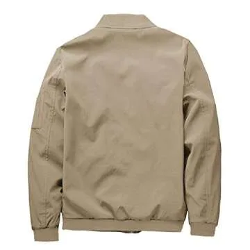 CRYSULLY Men's Lightweight Casual Coat - Windproof Bomber Jacket Khaki
