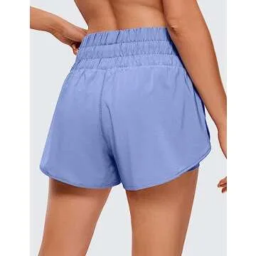 CRZ YOGA 2 in 1 High Waisted Running Shorts for Women 3" - Split Breathable for Athletic Tennis Gym Workout with Pockets Periwinkle Purple X-Small