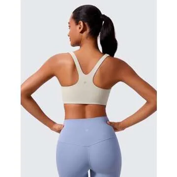 CRZ YOGA Butterlift Double Lined Square Neck Sports Bras for Women - Wireless V-Shaped Racerback Workout Yoga Top Non Padded Mojave Tan Medium