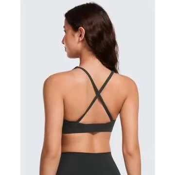 CRZ YOGA Butterluxe Deep V-Neck Sports Bras for Women - Spaghetti Strap Criss Cross Padded Top Low Coverage Wireless Yoga Black Medium