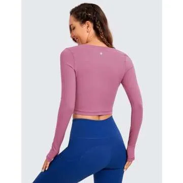 CRZ YOGA Butterluxe Long Sleeve Crop Tops for Women - Soft, Stretchy and Stylish Athletic Gym T-Shirts