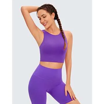 CRZ YOGA Butterluxe Racerback High Neck Longline Sports Bras for Women - Padded Workout Crop Tank Tops with Built in Pads Royal Lilac Medium