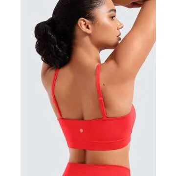 CRZ YOGA Butterluxe Womens Adjustable Spaghetti Thin Strap Sports Bra - Padded Wireless Square Neck Workout Yoga Clothes Deep Red Medium