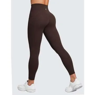 CRZ YOGA Butterluxe Womens Crossover Waist Workout Leggings with Pockets 25" - V Cross High Waist Gym Lounge Yoga Pants Hot Fudge Brown Small
