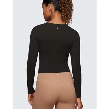 CRZ YOGA Butterluxe Womens Long Sleeve Crop Yoga Shirts Slim Fit Cropped Workout Tops Athletic Casual Basic Tight Shirt Black Medium