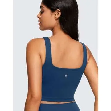 Show more Introducing the CRZ YOGA Butterluxe Women's Square Neck Longline Sports Bra, a perfect blend of style, comfort, and functionality. This chic crop top features an ultra-soft, stretchy fabric engineered for luxurious comfort, making it ideal for yoga, lounge days, or casual outings. With its built-in bra and removable pads, it offers excellent support without compromising on comfort. The low-cut square neck and back design not only provide a modern look but also enhance breathability and style.