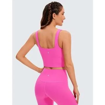 CRZ YOGA Butterluxe Womens Square Neck Longline Sports Bra - Workout Crop Tank Tops Padded Yoga Camisole with Built in Pads (Neon) Light Purple Small