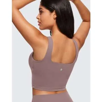 Show more Introducing the CRZ YOGA Butterluxe Women's Square Neck Longline Sports Bra, a game-changer in your workout and lounge wardrobe. Crafted with the utmost attention to detail, this crop tank top is engineered for luxurious comfort and style, perfect for yoga sessions or casual outings. The ultra-soft fabric feels like a gentle hug against your skin, while the stretchy material ensures ease of movement. Designed for A-D cups, this sports bra features a built-in bra with removable pads, providing you with customizable support. The chic low cut square neck and back design adds a fashionable twist, making it a versatile choice for pairing with high-waisted pants.