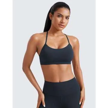 CRZ YOGA Butterluxe Womens Y Back Sports Bra - Padded Racerback Low Impact Spaghetti Thin Strap Workout Yoga Top True Navy Small