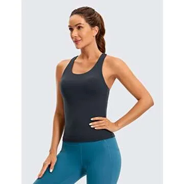CRZ YOGA Butterluxe Workout Tank Tops for Women Built in Shelf Bras Padded - Racerback Athletic Spandex Yoga Camisole True Navy Small