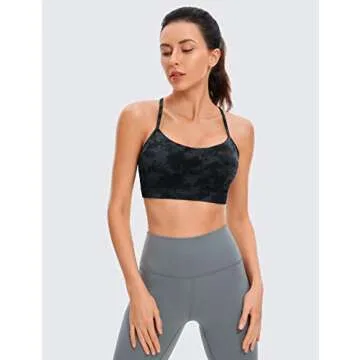 CRZ YOGA Butterluxe Y Back Sports Bras for Women Wireless Yoga Padded Top Tie Dye Smoke Ink Medium