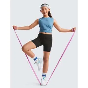 CRZ YOGA Girls Butterluxe Athletic High Waist Biker Shorts with Pockets - Lounge Active Dance Yoga Running Kids Teen Black Large