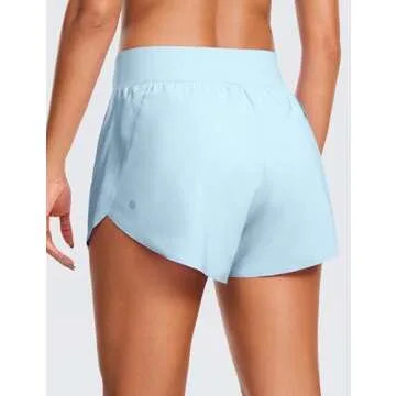 CRZ YOGA High Waisted Dolphin Athletic Running Shorts for Women 3" High Split Comfy Mesh Liner for Gym Workout Track Blue Linen Small