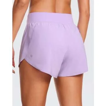 CRZ YOGA High Waisted Dolphin Athletic Running Shorts for Women 3" High Split Comfy Mesh Liner for Gym Workout Track Lilac Small