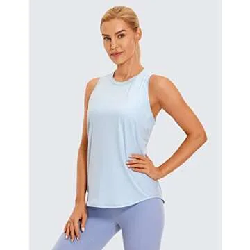 CRZ YOGA Lightweight Racerback Tank Top - Blue Linen Medium for Gym & Casual Wear