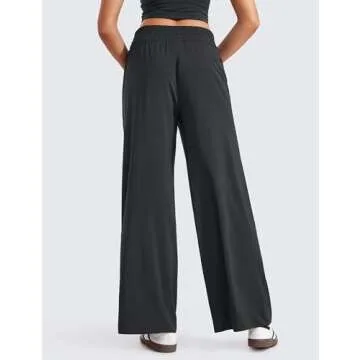 CRZ YOGA Lightweight Wide Leg Pants for Women 30" High Waisted Casual Lounge Travel Work Sweatpants Loose Fit Summer Black Large