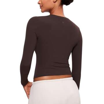 CRZ YOGA Long Sleeve Shirts for Women Soft Crew Neck Fall Basic Tight Tops Fitted Casual Going Out T-Shirts Hot Fudge Brown Medium