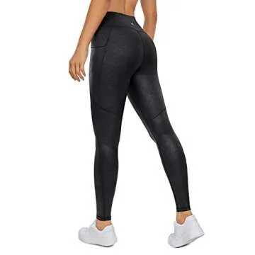 CRZ YOGA Matte Faux Leather Leggings - Stylish High Waisted Workout Pants with Pockets