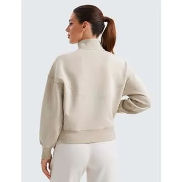 CRZ YOGA SoftAura Half Zip Sweatshirt for Women Long Sleeve Pullover Workout Casual Funnel Neck Tops with Pocket Mojave Tan Medium