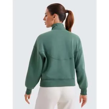 CRZ YOGA SoftAura Half Zip Sweatshirt for Women Long Sleeve Pullover Workout Casual Funnel Neck Tops with Pocket Dark Forest Green Small