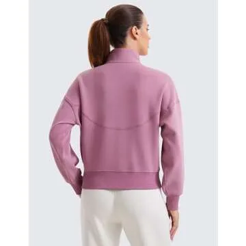 CRZ YOGA SoftAura Half Zip Sweatshirt for Women Long Sleeve Pullover Workout Casual Funnel Neck Tops with Pocket Velvet Dust Medium