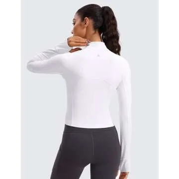 CRZ YOGA Women's Butterluxe Long Sleeve Workout Shirts Half Quarter Zip Sweatshirt Athletic Crop Tops Collared T-Shirts White Small