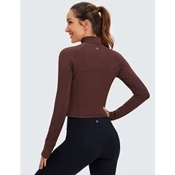 CRZ YOGA Women's Butterluxe Long Sleeve Workout Shirts Half Quarter Zip Sweatshirt Athletic Crop Tops Collared T-Shirts Taupe Medium