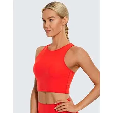 CRZ YOGA Women's High Neck Longline Sports Bra - Padded Racerback Yoga Bra Crop Tank Top with Built in Shelf Bra Dark Red X-Small