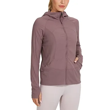 CRZ YOGA Women's Lightweight Breathable Athletic Jacket - Full Zip Running Hoodie with Pockets