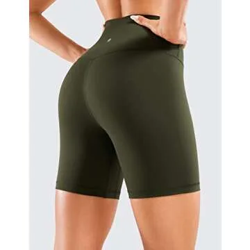 CRZ YOGA Women's Naked Feeling Biker Shorts - Comforting 6" Workout Essentials in Olive Green