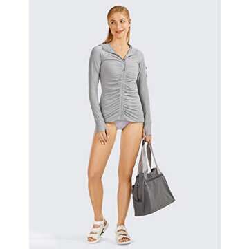 CRZ YOGA Women's UPF 50+ Long Sleeve Rash Guard Ruched - Zipper Front Hoodie Swimsuit Cover Ups Quick Dry Swim Shirts