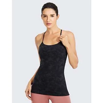 CRZ YOGA Women's Y Back Spaghetti Strap Workout Tank Tops - with Built in Shelf Bra Sports Camisole Padded Long Length Tie Dye Smoke Ink Small