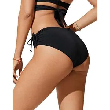 CRZ YOGA Womens Bikini Bottoms Full Coverage Bathing Swimsuit Adjustable Ruched Side Tie Swim Briefs Black Medium