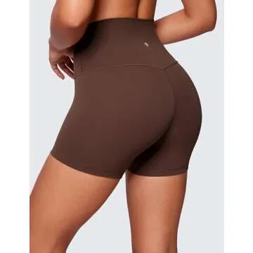 CRZ YOGA Womens Butterluxe Biker Shorts 4'' - High Waisted Booty Workout Volleyball Yoga Spandex Coffee Brown Small