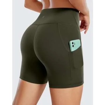 CRZ YOGA Womens Butterluxe Biker Shorts with Pockets 5 Inches - High Waisted Volleyball Workout Athletic Yoga Olive Green Small