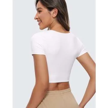 CRZ YOGA Womens Butterluxe Double Lined Short Sleeve Crop Tops Crew Neck Casual Workout T-Shirt Cute Basic Tee White Small