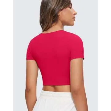 CRZ YOGA Womens Butterluxe Double Lined Short Sleeve Crop Tops Crew Neck Casual Workout T-Shirt Cute Basic Tee Viva Magenta Medium