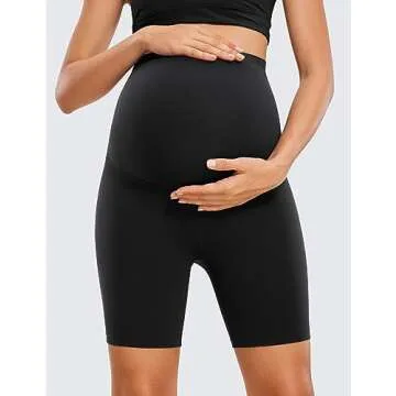 CRZ YOGA Womens Butterluxe Maternity Biker Shorts Over The Belly 6" - Pregnancy Yoga Workout Activewear Black Small