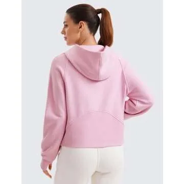CRZ YOGA Womens Fleece Lined Full Zip Hoodies Oversized Long Sleeve Casual Workout Hooded Sweatshirt with Thumb Holes Pink Peony Small