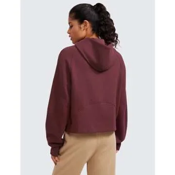 Show more Indulge in luxurious comfort and style with the CRZ YOGA Women's Fleece Lined Half Zip Hoodie Pullover. Designed specifically for the active woman, this oversized long sleeve casual sweatshirt perfectly blends functionality and fashion. Crafted from a premium thick cotton-blend fabric, it boasts a soft, fuzzy fleece lining that embraces you in warmth while remaining exceptionally breathable. The attractive dark red hue adds a vibrant touch, making it a staple for your workout attire or casual lounge wear. Its waist-length design makes it easy to pair with any outfit, ensuring you look effortlessly chic whether you're heading to the gym or relaxing at home.