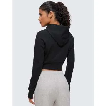 CRZ YOGA Womens Fleece Zip Up Cropped Hoodie Workout Jacket Athletic Casual Long Sleeve Sweatshirts with Thumb Holes Black Small