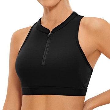 Show more Introducing the CRZ YOGA Women's High Neck Front Zip Sports Bra - your ultimate companion for comfort and support during a wide array of activities. This stylish sports bra is intricately designed to cater to the needs of active women, particularly those engaging in low to medium impact activities such as yoga, gym workouts, and even casual lounging. Made from Naked Feeling Soft collection materials, it offers an exceptionally soft touch, elasticity, and breathability, ensuring you feel as good as you look. The innovative sweat-wicking function keeps you dry and comfortable, whether you’re hitting the trails or the gym floor.