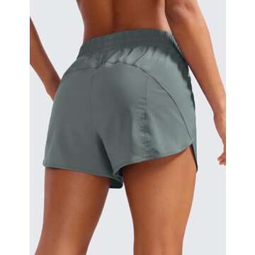 CRZ YOGA Womens High Waisted Running Shorts Mesh Liner 3'' Dolphin Quick Dry for Athletic Gym Track Workout with Zip Pocket Grey Sage Small