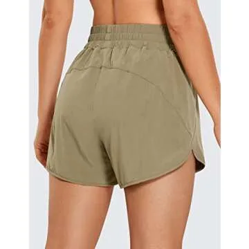 CRZ YOGA Womens High Waisted Running Shorts Mesh Liner 3'' Dolphin Quick Dry for Athletic Gym Track Workout with Zip Pocket Mountain Olive X-Small