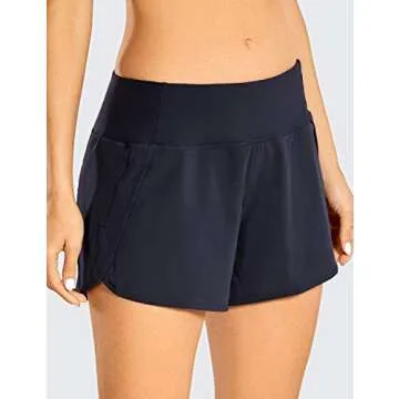 CRZ YOGA Womens Lightweight Gym Athletic Workout Shorts Liner 4" - Quick Dry Running Sport Spandex Shorts Mesh Zipper Pockets Navy X-Large