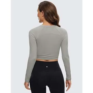 CRZ YOGA Womens Long Sleeve Crop Workout Tops Athletic Yoga Running Cropped Tops Slim Fit Gym Shirts Rock Grey Medium