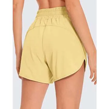 Show more Introducing the CRZ YOGA Women's Mid Waisted Running Shorts - your ultimate companion for an active lifestyle. Crafted for those who love to run, these shorts feature an ultra-soft, feather-light fabric that feels amazing against your skin. Designed with a 5-inch inseam, they offer the perfect balance of coverage and freedom of movement. The quick-dry material ensures you stay comfortable, even during the most intense workouts. Enjoy the added benefit of a built-in mesh liner that reduces friction, making these shorts ideal for any athletic endeavor. Say goodbye to uncomfortable chafing and hello to seamless performance.
